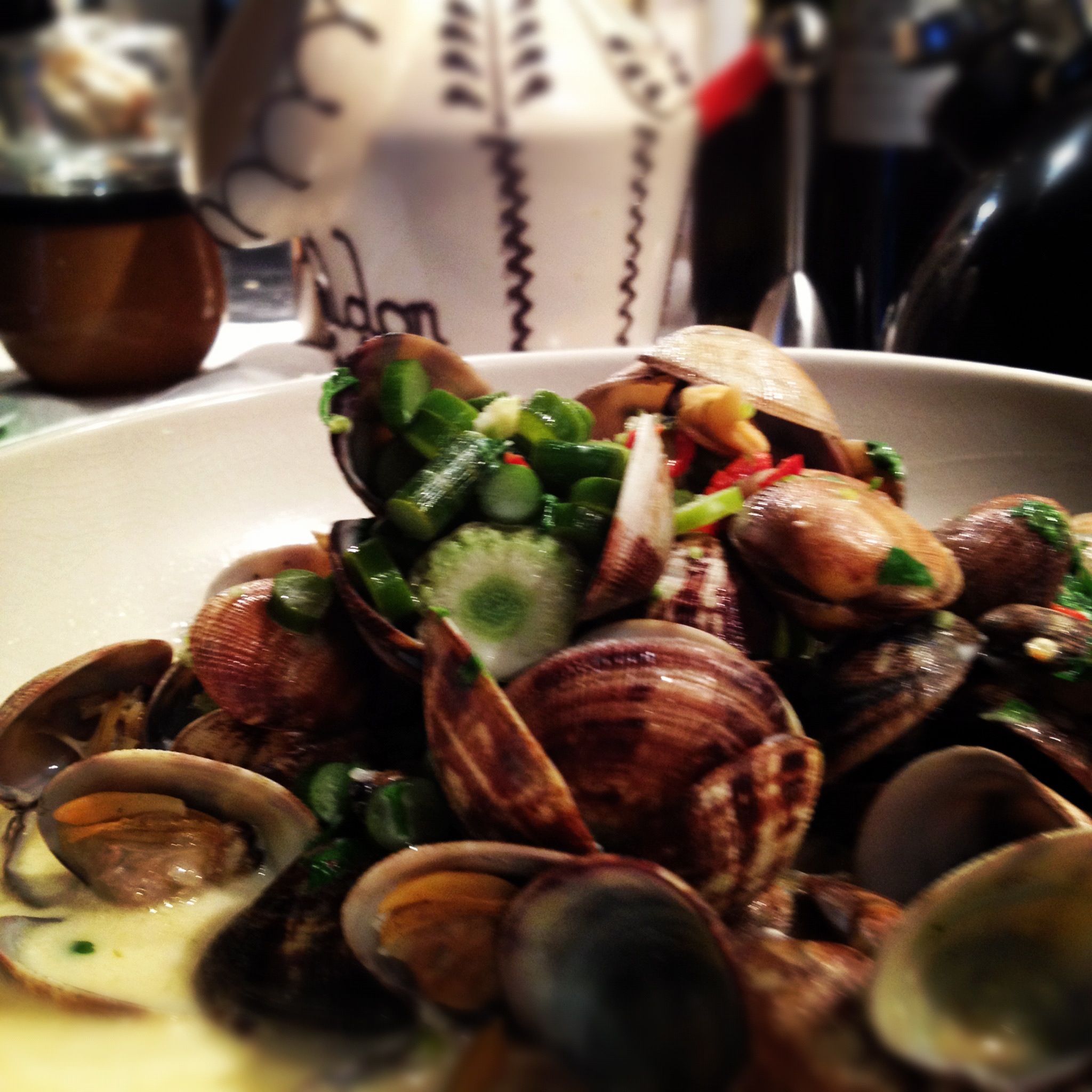 CLAMS WITH GARLIC SCAPES & CHILLI