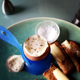 Chickens would ruin my window boxes. I like geraniums and without any outdoor space even one hen per box would spoil the carefully cultured look although being 20 feet off the ground at least the foxes wouldn’t get them. I’m saying this because I love an egg and after yesterday’s ‘sorry for myself’ mini-rant on supermarket packaging being pro-couple, the egg is surely the most ancient and perfect food for the solo diner. Of course everyone will tell you that fresh is best and this is undoubtedly true, hence my ruminations on slapping a couple of Burford Browns on the otherside of the roman blind. But I’ll regularly have a box of eggs for a couple of weeks and even on day 14, while poaching maybe a dangerous game an egg in cold water, brought to the boil and simmered for 4 mins isn’t half bad. Served with my favourite Rye & Spelt toast, unsalted butter and a sprinkling of Balinese sea salt from Big Tree Farms. I’m ready for the day.