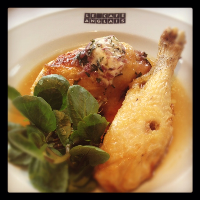 There’s an all too enticing array of first course and hors d’oeuvres. But I went straight to the radishes. Peppery little devils tempered with the aforementioned butter. Then on to a roasted leg of chicken with tarragon butter with a side of creamed spinach. Lovely chewy tasty chicken, half the price of the breast and no doubt twice as tasty. A great plate which I disrespectfully washed down with a coca-cola. A glass of white burgundy would have been much, much better.