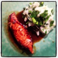 - Pour the reduced marinade over the salmon (strain if you feel like it) and serve with the fennel slaw on one side.